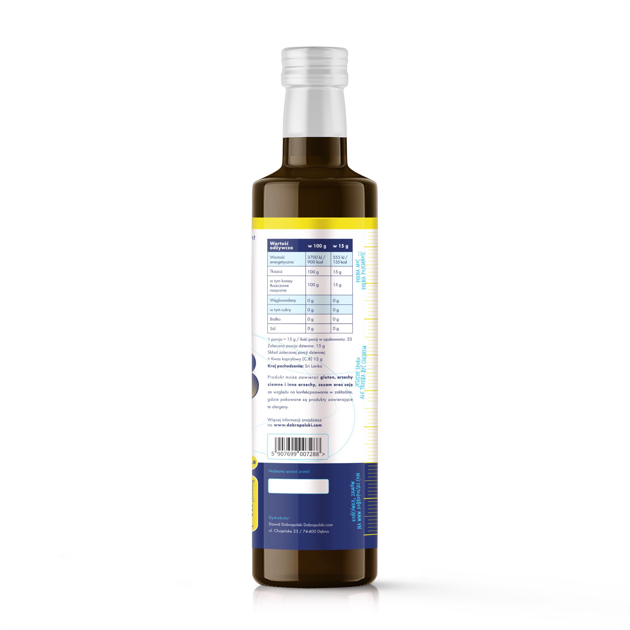 Porcja 15 g zawiera 15 g czystego oleju C8 i dostarcza 135 kcal.